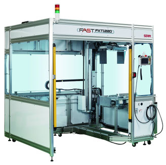 スター精機のロボットパレタイザー・低全高タイプのPXT-1220Aは「運用しやすい」「導入しやすい」をコンセプトに、全高を2000mmまで抑え、キャスター付きで自由に移動も可能な利便性の高いパレタイザーです。